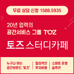 토즈, 7월 23일 ‘토즈 스터디카페 사업설명회’ 개최 국내 공간 서비스 사업 20년 업력의 토즈가 오는 7월 23일 신논현역 부근에 위치한 토즈 모임센터 강남 2호점 C부스에서 ‘토즈 스터디카페 사업설명회’를 개최