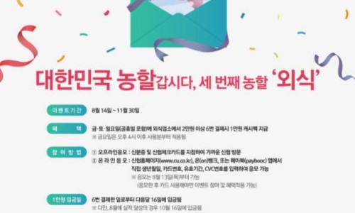 신협중앙회는 한국농수산식품유통공사가 연계해 외식 프로모션을 오는 14일부터 11월30일까지 실시한다고 13일 밝혔다. 신협 체크카드를 포함한 비씨카드를 공휴일을 포함해 금·토·일요일에 실적 적용이 가능한 외식 업소에