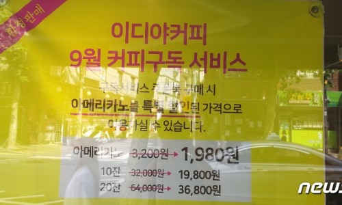 (서울=뉴스1) 김종윤 기자 = # 서울의 한 이디야커피 가맹점주 A씨는 사회적거리두기 2단계 완화와 동시에 구독 서비스를 도입했다. 아메리카노(3200원) 10잔을 1만9800만원, 20잔을 3만6800원에 제공하