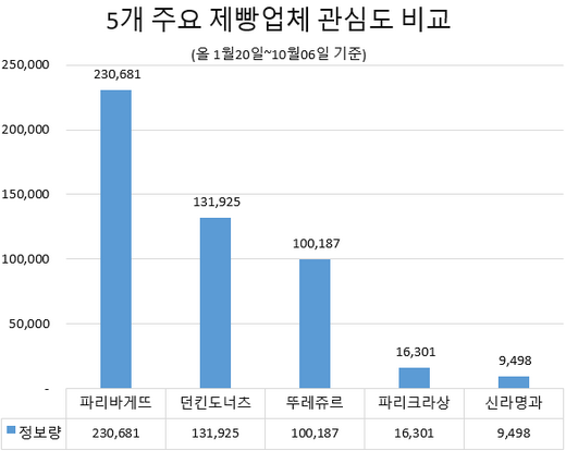 코로나19 확산기 '파리바게뜨' 소비자 관심 제빵사 '1위' 국내 주요 5개 제빵업체 중 국민들의 가장 많은 관심을 받은 제빵업체는 '파리바게뜨' ...