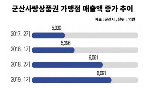 군산시가 군산사랑상품권의 경제적 효과를 분석한 결과, 상품권 사업 전인 2017년대비 상품권 가맹점에서 4302억원의 매출이 증가했다. 한 업소당 평균 5114만원의 매출증가 효과가 나타났다. 이에 따라 전국의 소상공인 기업체감경기지수(BIS) 추이가 지속 하락하는 상황에서도,