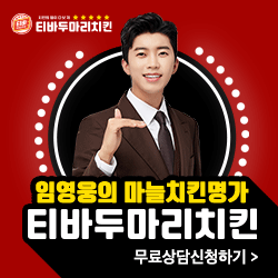 창업 을 하려는분 들이 가장 중요하게 생각하는 것이 무엇일까요? 대부분 세가지가 판단의 기준이 될 것 입니다. 티바두마리치킨의 이유있는 창업 치킨은 계절의 영향을 받지 않는 대표 음식이자 남녀노소 누구나 좋아하는 대중성까지 겸비한 스테디셀러 아이템 입니다! 가성비 불경기 속 가성비가 정답 지속되는 불경기로 가성비를 찾는 소비자가 늘어날 것이며 매출을 성장하게 만드는 원동력 수익성 최저임금 인상, 임대료 상승 등 운영비 증가를 고려하여 치킨 외에 메뉴를 판매함으로써 객단가를 높여 마진은 보존하고 수익성을 극대화 시스템 프랜차이즈 전문...