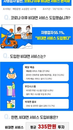 [파이낸셜뉴스] 코로나19로 인한 매출 부진 해결하고자 자영업자 절반 가량은 배달이나 무인점포 등 비대면(언택트) 서비스를 도입한 것으로 확인됐다. 비대면 알바채용 바로면접 알바콜과 비대면 출퇴근 기록 및 자동 급여