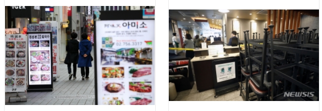 서울 종로구에서 음식점을 운영하는 박모(47)씨는 최근 코로나 바이러스 감염증 확산으로 손님들이 단체예약을 대부분 취소했다고 하소연했다. 그는 "연말 송년회 등 단체회식 예약이 늘어 식재료도 준비를 했는데, 결국 비