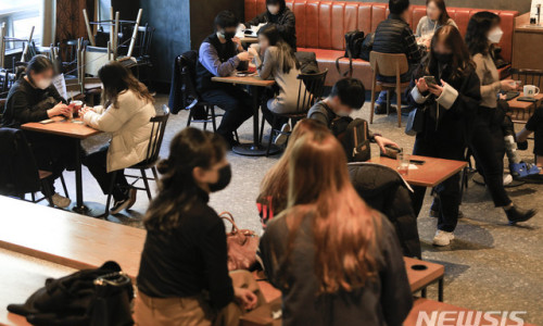 '카페에서 공부하니까, 답답한 게 좀 풀리네요.' 사회적 거리두기 다중이용시설 방역조치가 완화된 이후, 첫 주말인 23일 오후 3시 대전 유성구의 한 프랜차이즈 카페는 시끌벅적했다..