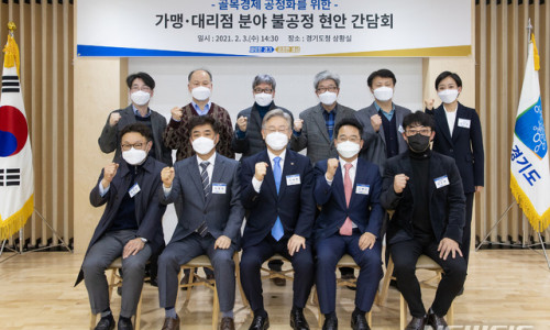 [수원=뉴시스] 이병희 기자 = 이재명 경기도지사가 가맹·대리점 분야 불공정 피해점주들과 만나 "경기도 차원의 조사 요청과 수사 의뢰 등 필요한 것들을 해나가겠다"고 밝혔다. 이 지사는 3일 경기도청에서 가맹·대리점