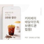 ▶ 커피베이, 배달의민족 브랜드관 입점 기념 3천원 할인 프로모션 진행!