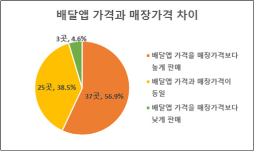 ▶ 배달앱 입점 음식점 57%, 매장보다 높은 가격에 음식 판매