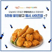 ▶ 멕시카나치킨, 쿠팡이츠로 주문하면 5천원 할인에 펩시 콜라 1.25L 무료 증정까지!
