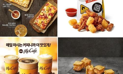 이디야 스퀘어 피자 2종, 노브랜드버거 상하이 핑거 포크, 맥도날드 맥카페, 제너시스BBQ 통새우 멘보샤.[사진=이디야커피, 신세계푸드, 맥도날드, 제너시스BBQ]구색용으로 여겨졌...