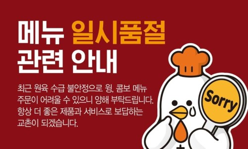 AI 사태 장기화에 부분육 공급 부족…일부 메뉴 판매 중단