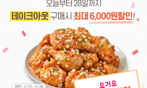 멕시카나치킨, 요기요에서 테이크아웃 하면 최대 6천원 할인