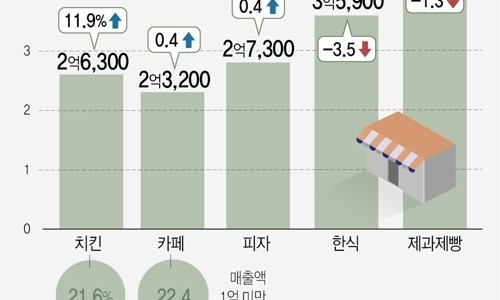 [그래픽] 프랜차이즈 치킨집·카페 연평균 매출
