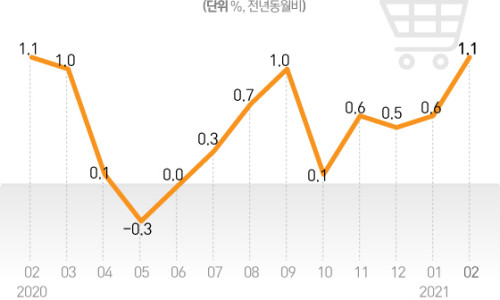 2월 소비자물가 1.1%↑…"농축산물 10년만에 최대 상승"(상보)