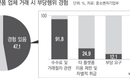 [경향신문] 오픈마켓이나 배달·숙박·부동산 애플리케이션(앱) 같은 온라인 플랫폼을 이용하는 기업 3곳 중 2곳은 수수료에 부담을 느끼고 있는 것으로 조사됐다. 입점업체들은 높은 수수료를 내는 데다 부당행위까지 경험하
