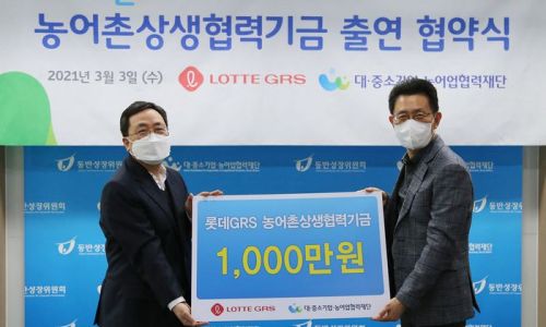 롯데GRS(대표이사 차우철)가 대·중소기업·농어업협력재단(이하 협력재단)과 기업간 상생협력 촉진을 위한 농어촌상생협력금 출연을 위한 협약을 체결했다. 롯데GRS는 2018년부터 상생을 위해 협력재단과의 기금 출연 협