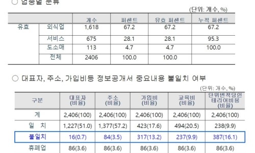 서울소재 프랜차이즈 브랜드 3104개 대상 정보공개서 정확도 모니터링