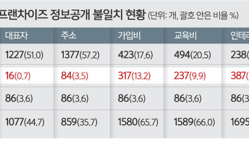 프랜차이즈 25%, 가맹 공개정보 허위