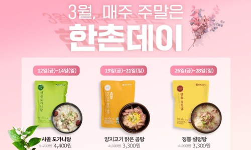 종합식품기업 이연에프엔씨(대표 정보연)가 자사 온라인몰 ‘한촌몰’에서 한촌데이 이벤트를 진행한다. 한촌데이 이벤트는 한촌몰에서 판매 중인 제품을 주말에 한해 할인 혜택을 제공하는 행사다. 오는 21일까지는 ‘양지고기
