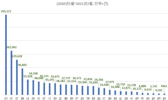코로나19가 기승을 부리면서 배달 음식을 이용하는 사람들이 크게 늘어난 가운데 최근 1년간 국민들이 가장 많이 주문한 배달 음식은 '치킨'인 것...