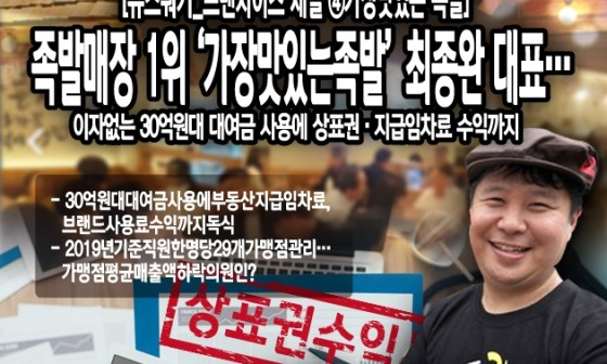[프랜차이즈 재벌 ④가장맛있는 족발] 족발매장 1위 ‘가장맛있는족발’ 최종완 대표…이자없는 30억원대 대여금 사용에 상표권‧지급임차료 수익까지