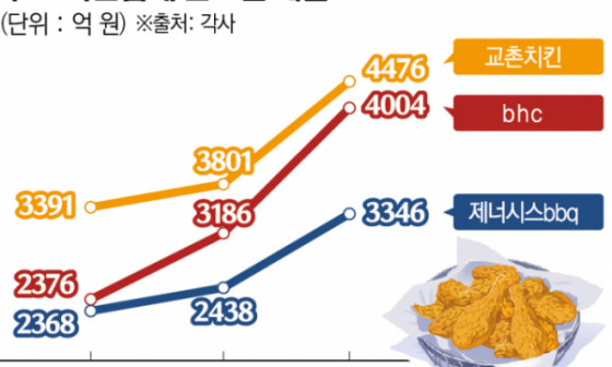 "치느님 4000억 시대"…치킨 빅3, 물고 물리는 추격전