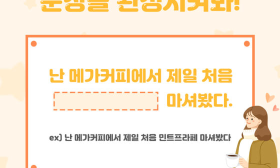 "난 메가커피에서 제일 처음 민트프라페 마셔봤다." 새로운 트렌드를 주도하고 있는 '메가커피'가 추억을 기억하니? 메가커피 문장완성 이벤트를 ...