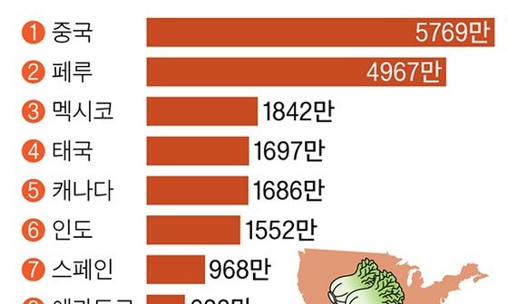 글로벌 김치 시장 연평균 5.2%씩 성장…해외 곳곳에 생산 거점, 중국 견제해야
