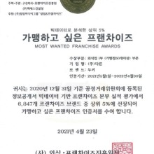 지난 23일, 선정브랜드 선정패 전달 (사)외식·프랜차이즈진흥원이 주최하고, 프랜차이즈 컨설팅 전문기업인 '맥세스컨설팅'이 주관한 ‘2021 빅데...
