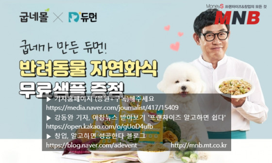 견주와 반려견이 함께 식사해요~굽네몰 제품 사면 반려견 자연화식 듀먼 제품 무료 증정 견주는 굽네몰 닭...