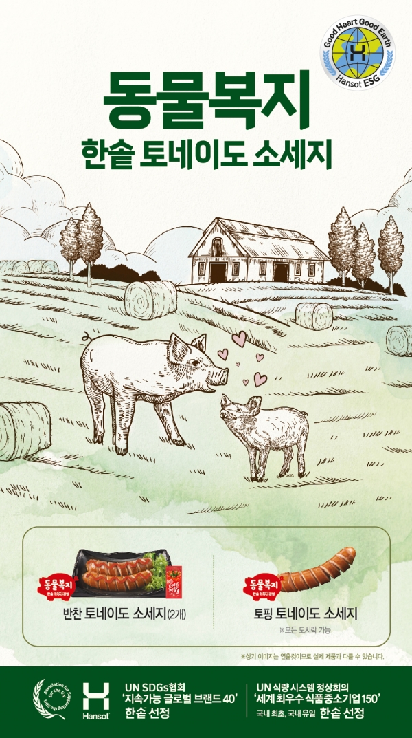 한솥도시락 관계자는 “인기 토핑 메뉴인 ‘토네이도 소시지’를 동물복지 인증 돈육으로 교체함으로써 ESG 경영에 앞장서게 됐다"라며 "다양한 분야에서의 ESG 경영 실천을 위해 노력을 아끼지 않을 것”이라고 말했다.
