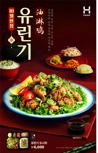 한솥도시락 관계자는 “가을 나들이 철을 맞아 고급 중식당에서 만나볼 수 있었던 유린기를 야외 어디서든 간편하게 즐길 수 있도록 10월 한정 메뉴로 재출시하게 됐다”며 “이번 재출시가 합리적인 가격으로 일품 요리의 맛을 느끼고 싶은 많은 분들께 행복한 즐거움이 되길 바란다”고 말했다.