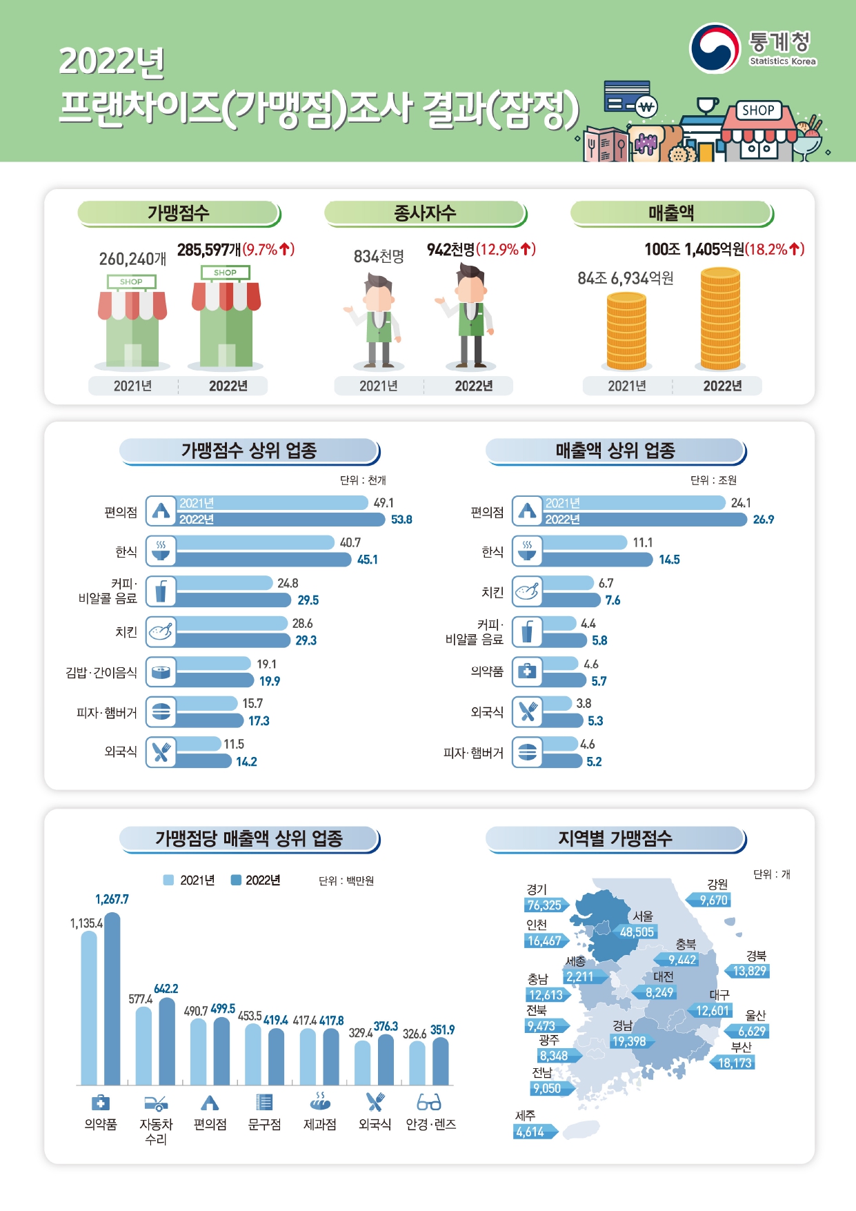 [ 통계청 ] 2022년도 프랜차이즈 통계현황 (잠정)