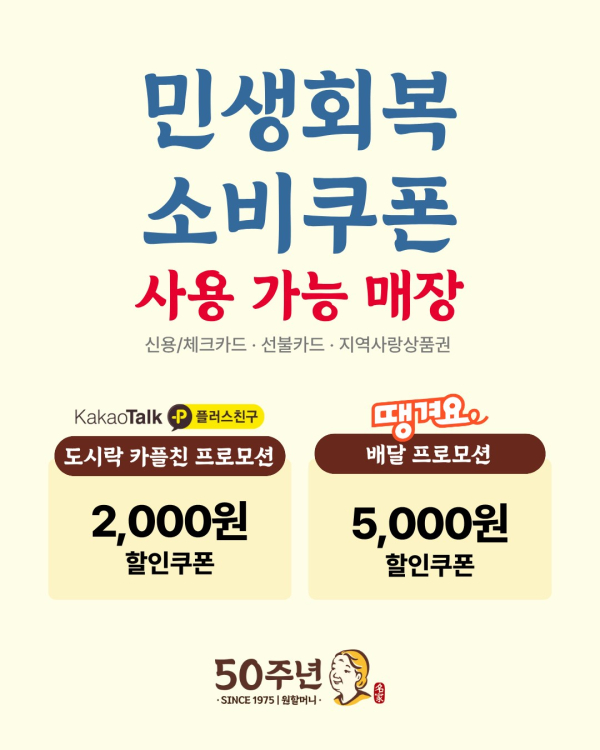 원할머니 보쌈족발, 2차 민생회복 소비쿠폰 연계 프로모션 진행 카카오톡 플친쿠폰, 땡겨요 최대 1만원할인...