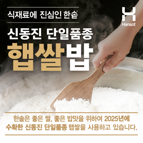 국내 대표 도시락 프랜차이즈 한솥도시락은 ‘2025 신동진 단일품종 햅쌀’을 전 가맹점에 공급했다고 밝혔다.