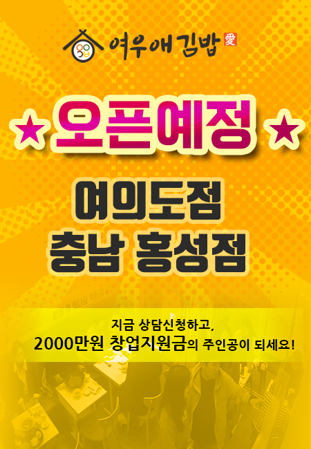 여우애김밥, 여의도점·충남 홍성점 오픈 예정 프랜차이즈 여우애김밥이 서울 핵심 업무 상권인 여의도와 충...