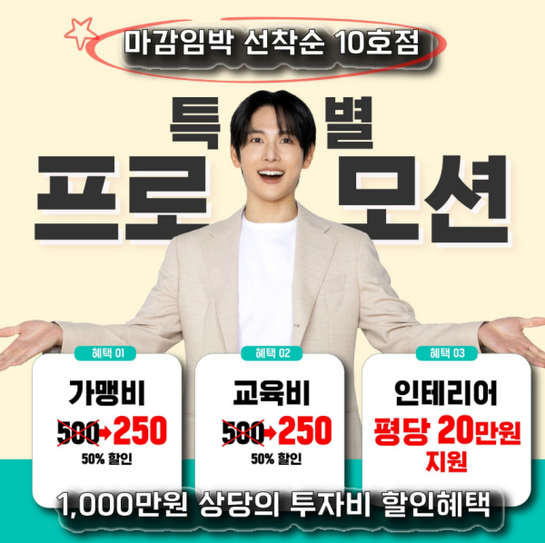 또 “좋은 입지는 기다려주지 않는다”며 “현재 문의한 예비 창업자에 한해 혜택이 적용되는 만큼 빠른 상담이 필요하다”고 덧붙였다.