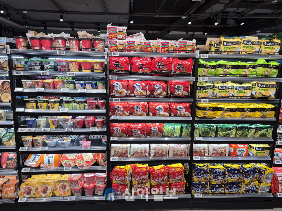 중국 칭다오 따룬파 마트 내 한국라면 제품이 진열돼 있다. [사진=신현숙 기자]