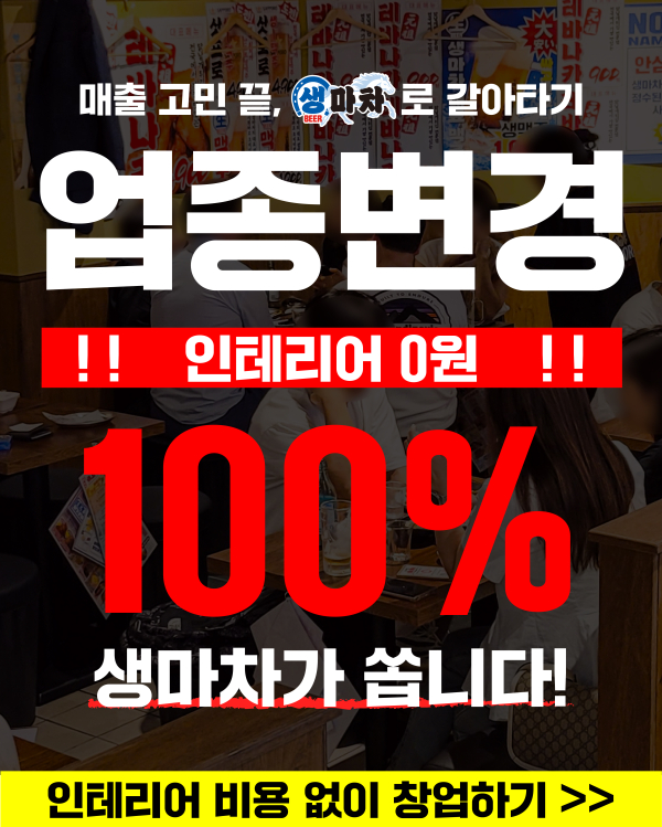 주점창업 브랜드 생마차는 업종 변경을 희망하는 예비 점주를 대상으로 인테리어 비용 100% 본사 지원 프로모션을 진행하며, 초기 투자 부담을 획기적으로 낮춘 창업 구조를 제시했다.