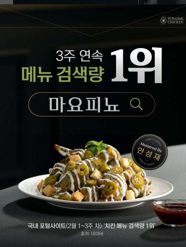 푸라닭 신메뉴 '마요피뇨' 판매 증가…검색량 상위권 유지 셰프 협업 메뉴로 초기 판매 흐름 확...