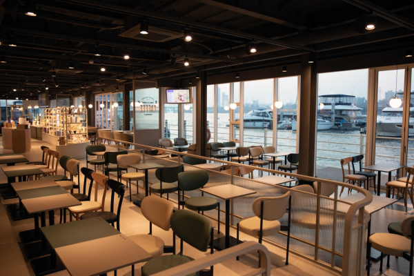 약 140평 규모의 대형 매장으로, 화이트와 아이보리 톤을 중심으로 한 인테리어와 전면 통창 설계를 적용해 한강과 요트 선착장 경관을 조망할 수 있도록 구성했다.