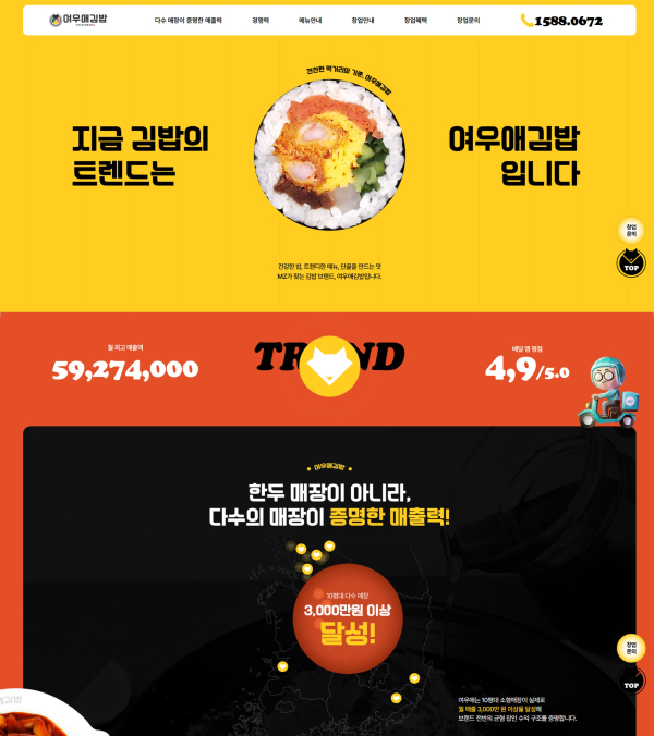 여우애김밥, BI 변경 맞춰 랜딩페이지 개편…'황금밥'·운영 시스템 정보 강화 김밥·분식 프랜...